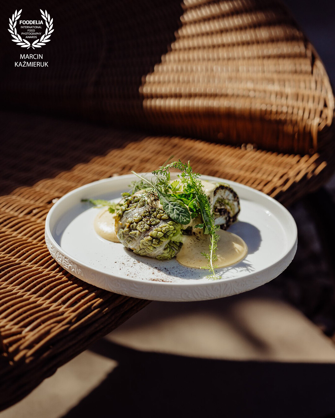 here cabbage rolls with cod fillet, saffron bisque and black lentils!