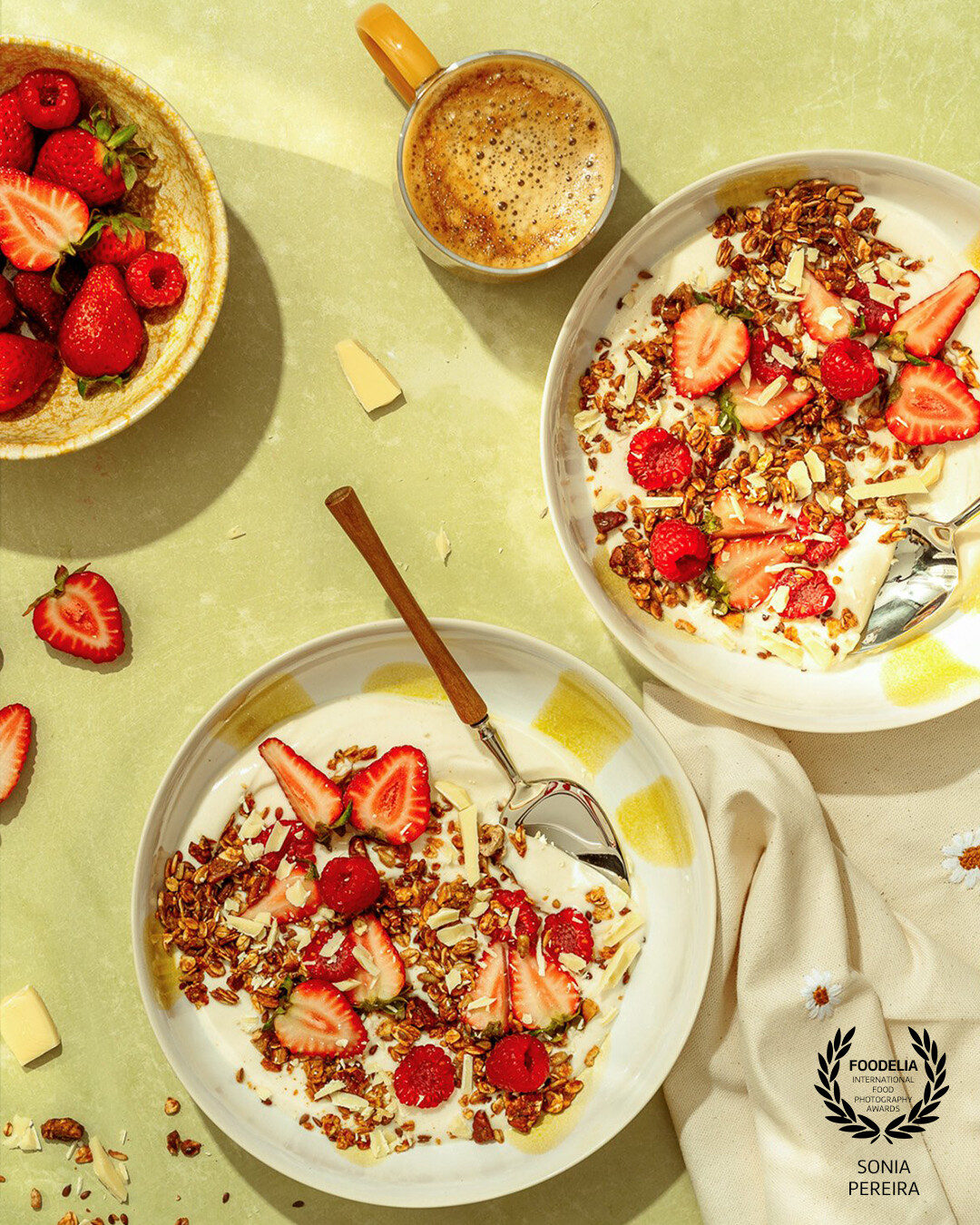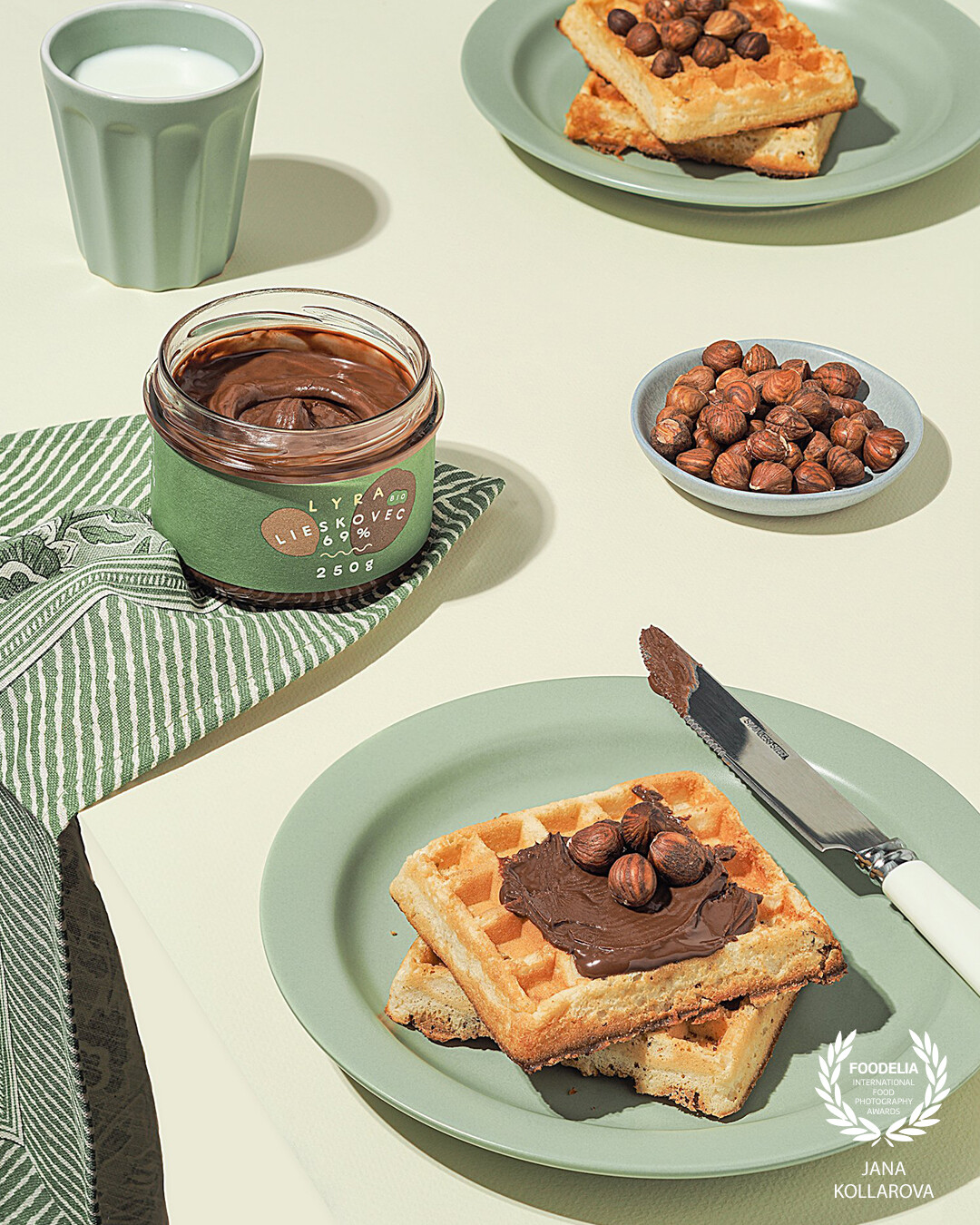 Crispy golden waffles topped with silky hazelnut cream โ a perfect balance of texture and flavor in the morning light.