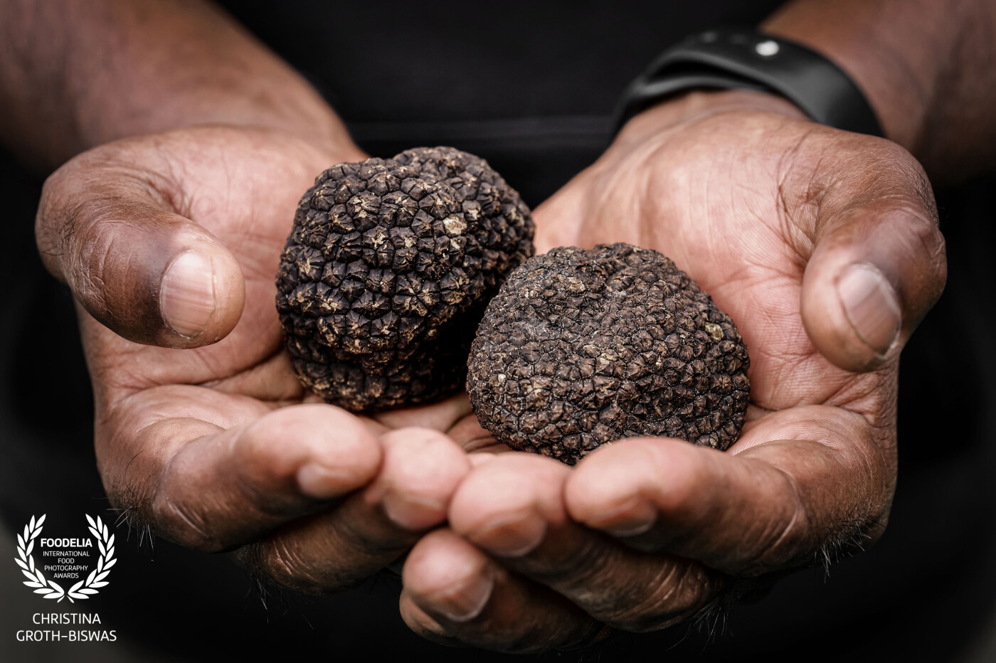 Black summer truffles. I wanted to draw the focus on the delicate textures of the truffles but also reflect their earthy origin.