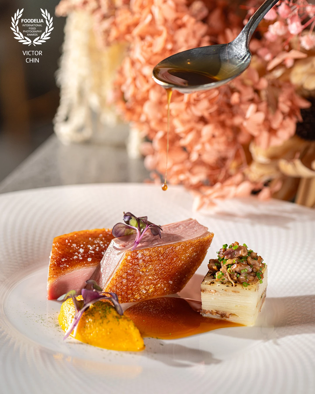 I was working to attain a soft layer of romantic atmosphere as a overarching narrative with the image. Plus a level of simplicity and elegance in the food elements, dish ware and supporting cast.