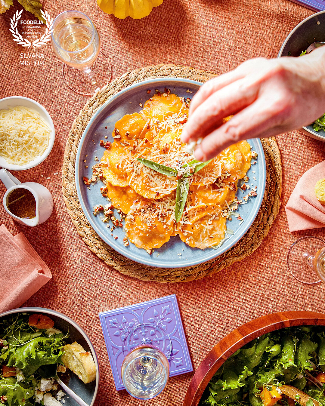 Fall is the time to be obsessed with everything pumpkin. The colours, the smell the feeling. Pumpkin ravioli with brown butter sauce, sage and pecans. Parmigiano Reggiano cheese in action.
