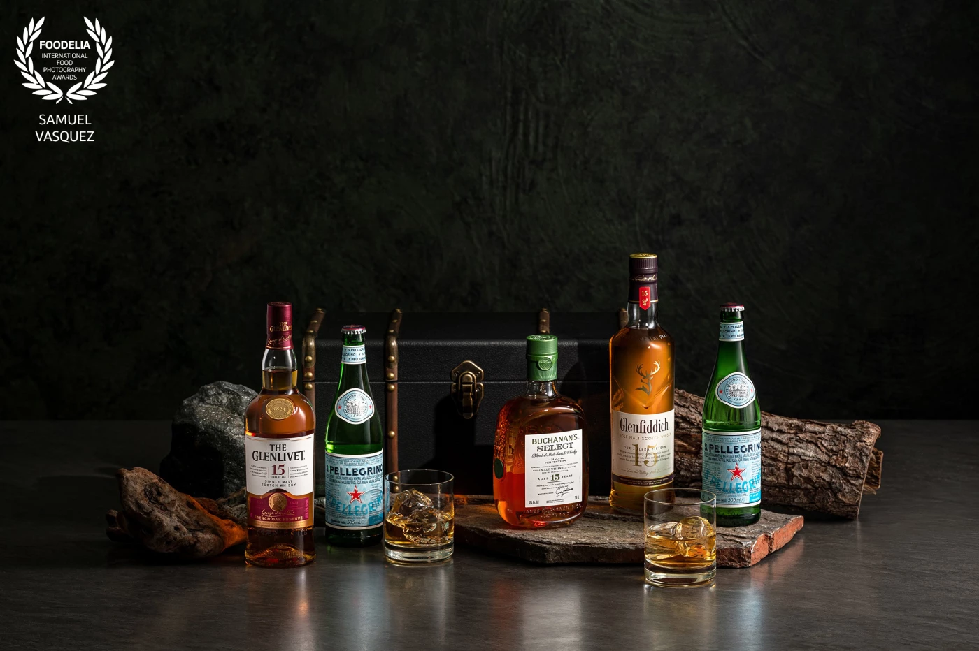 Layers of creamy yogurt, crunchy granola, and fresh berries creating a delicious parfait, elegantly presented on a rustic dark background with surrounding elements