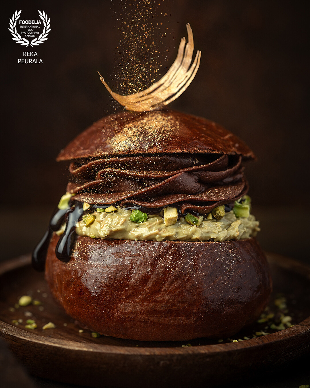 A playful fusion of tradition and indulgence, captured as a hero visual. Rich textures, layered details, and controlled lighting elevate the dessert into a true centre piece rather than just a sweet pastry. Decadent yet intentional, it balances Nordic tradition with the viral Dubai chocolate trend through refined styling, colour harmony, and depth.