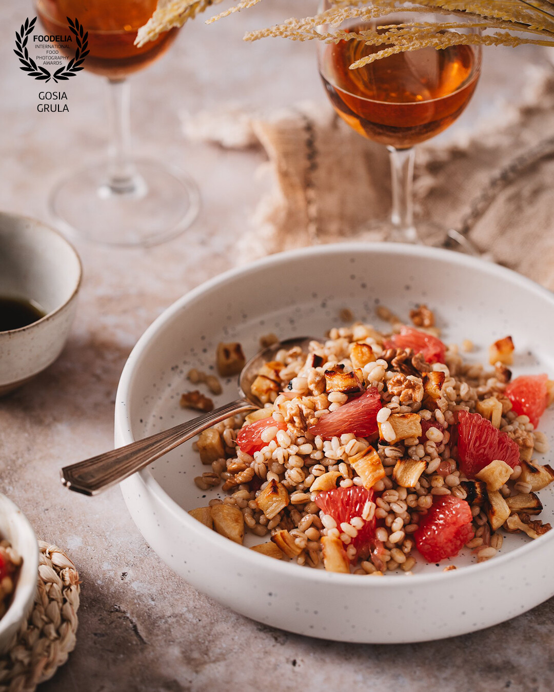 Suprisingly delicious winter salad - pearl barley, roasted parsley, grapefruit and walnuts plus classic vinaigrette. Definitely worth trying :)
