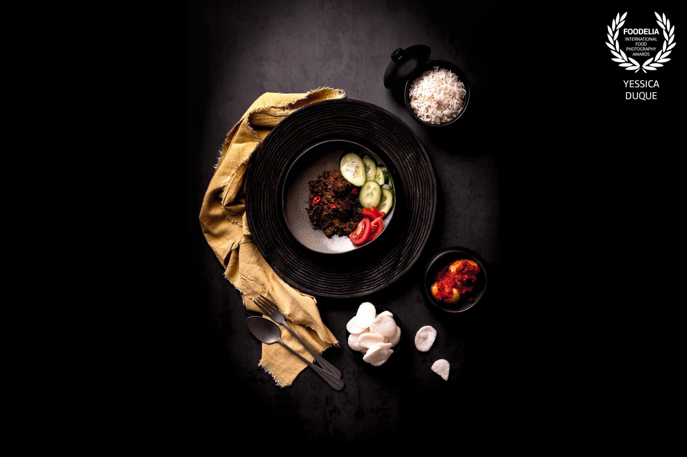 I was in the mood to cook something delicious and here is my favorite combination, my humble version of Rendang Padang. A slow-cooked meat stew, Sambal eggs, sweet-sour cucumbers, and Kroepoek...It was delicious!