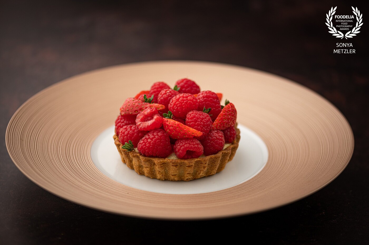 Studio days without any pastry chefs at hand. Home made raspberry tart, amazing plates by JL Coquet, backdrop by @blackvelvetstyling and @profoto