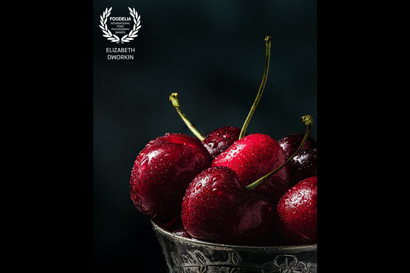 I took the image of these cherries very quickly. I like the idea of the cherries sitting a goblet. I love how clear the cherries are, ready to be picked from the cup and eaten up.