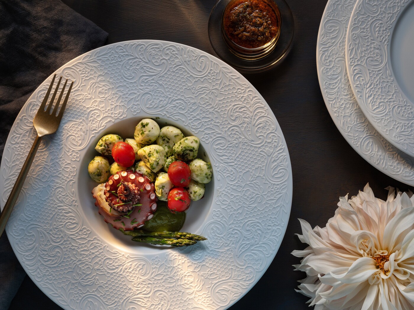 120th CollectionI was working to attain a soft layer of romantic atmosphere as a overarching narrative with the image. Plus a level of simplicity and elegance in the food elements, dish ware and supporting cast.