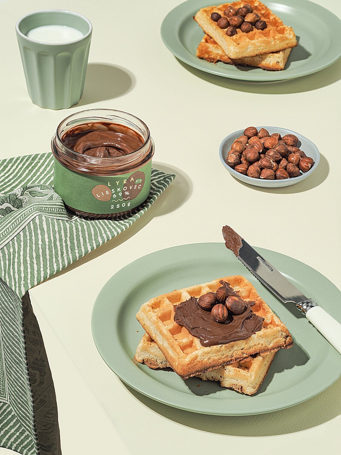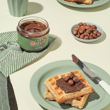 120th CollectionCrispy golden waffles topped with silky hazelnut cream β a perfect balance of texture and flavor in the morning light.