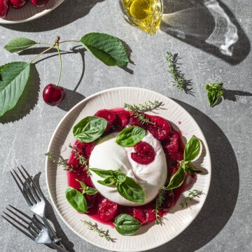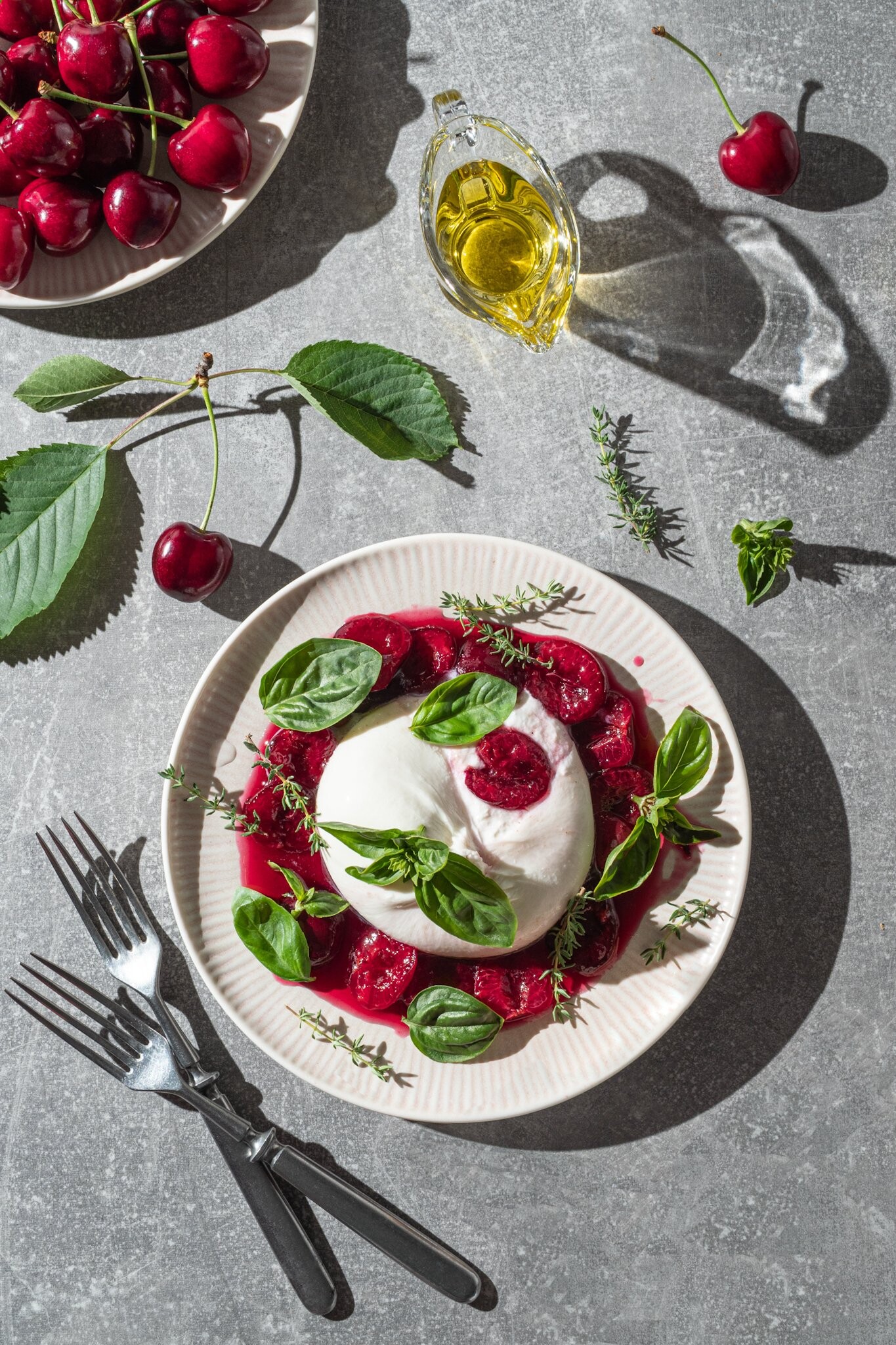 121st CollectionSummer elegance on a plate β creamy burrata paired with sweet cherries, fresh basil, and a drizzle of olive oil. A play of light and texture that celebrates seasonal simplicity.