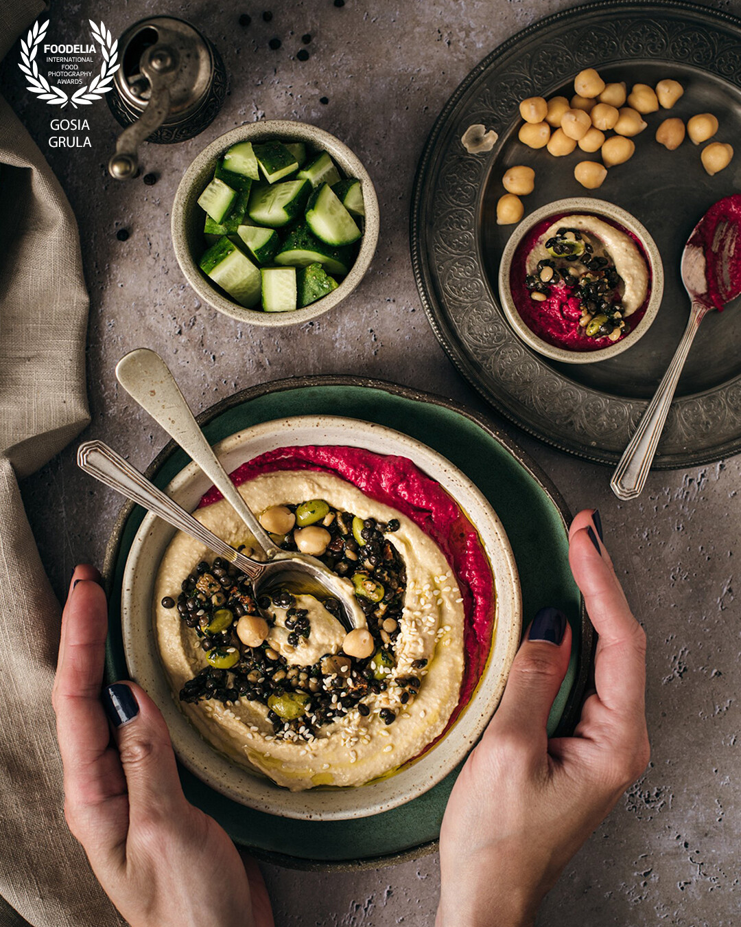 120th CollectionHummus is one of my favourite subjects in food photography - variety of colours and textures makes working with it never-ending fun :)