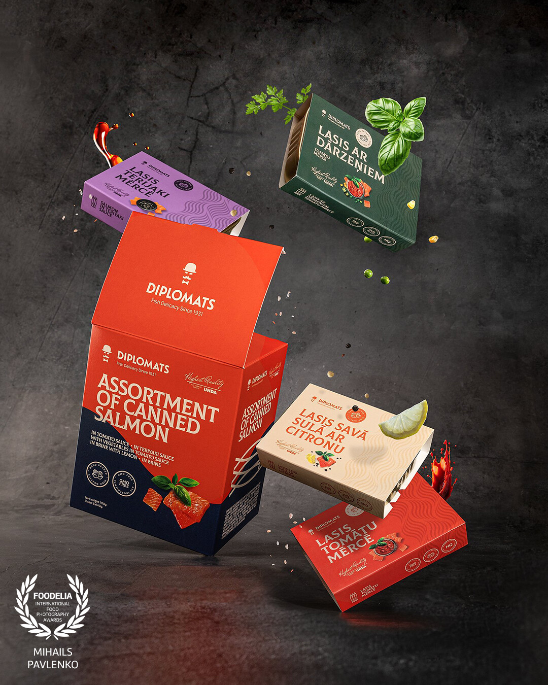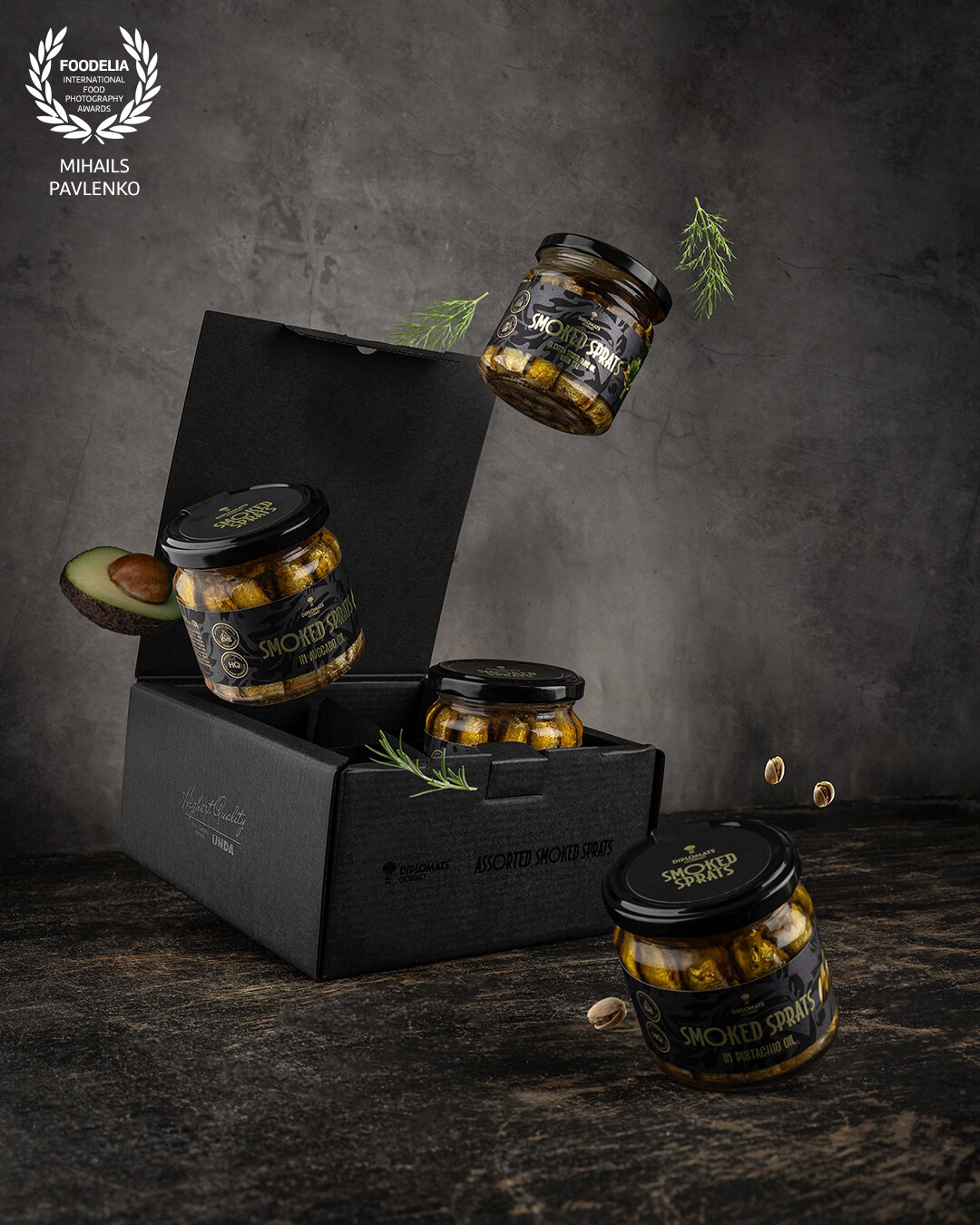 124th Collection@diplomats.fish photoshoot of assorted smoked sprats