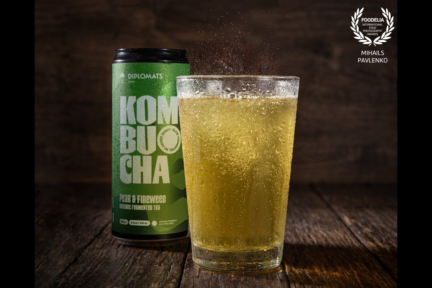 Photo shoot of @diplomats.fish pear & fireweed kombucha @rudys_kombucha