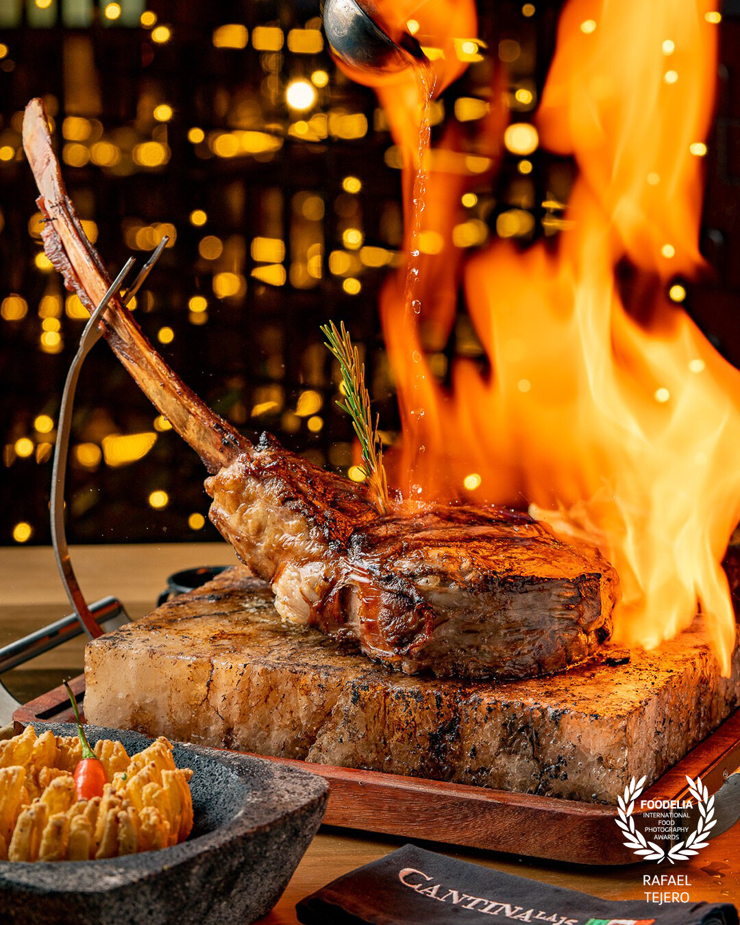 116th CollectionIt's not easy to capture fire on plates this large. A huge Himalayan salt slab, mixed with tequila and high heat, allowed us to capture this striking image after several attempts. Was it worth it? Absolutely!