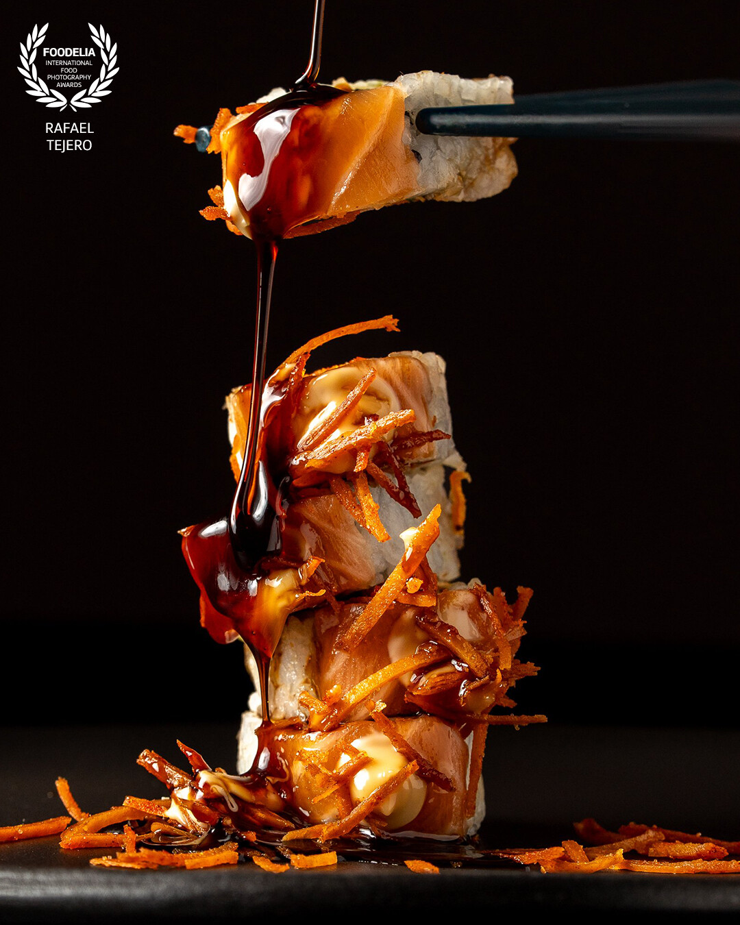 115th CollectionWe always tell our students that sushi is one of those dishes that can never be missing from your food photography portfolio. This time, we captured this beautiful and colorful maki, highlighting its textures and colors.