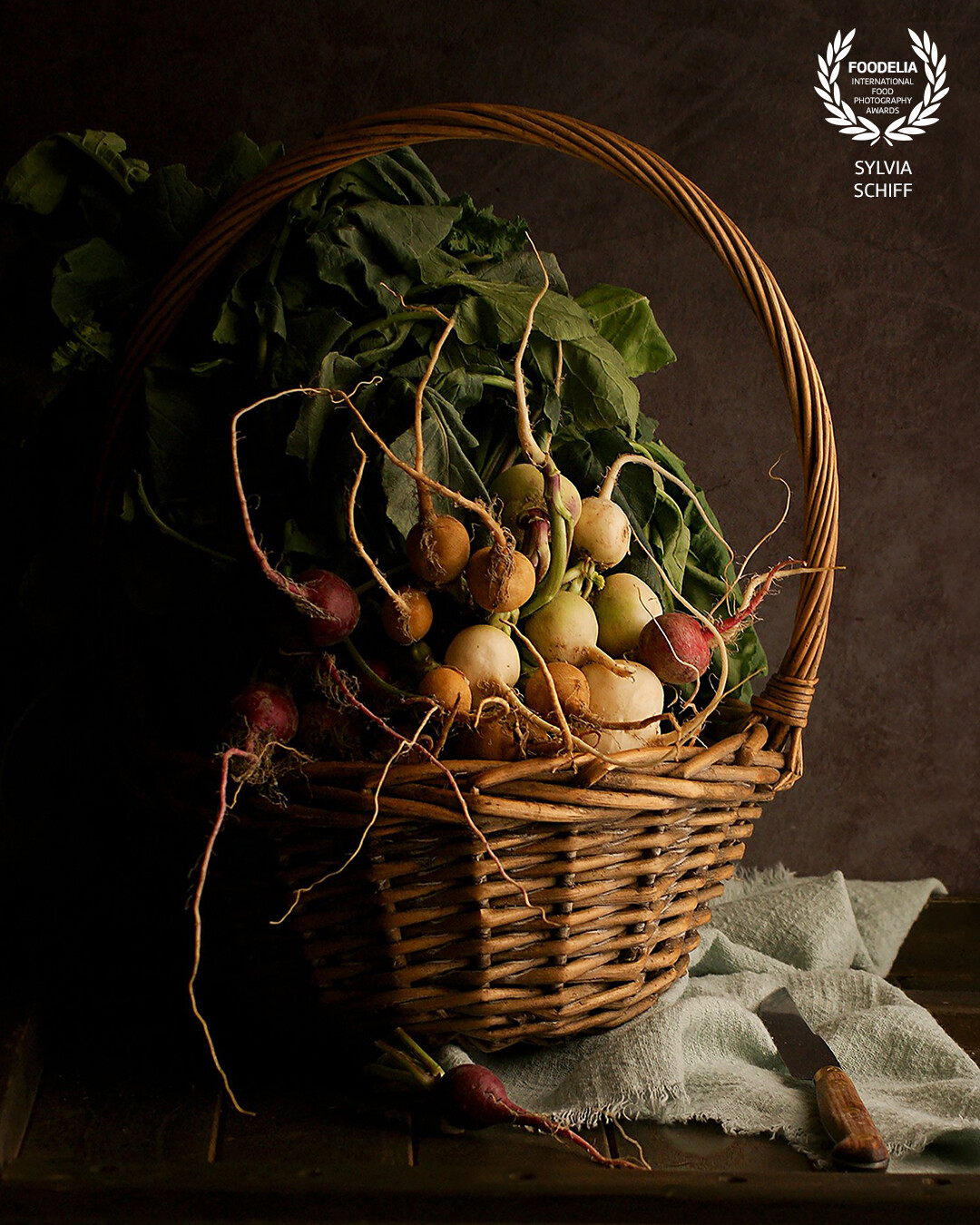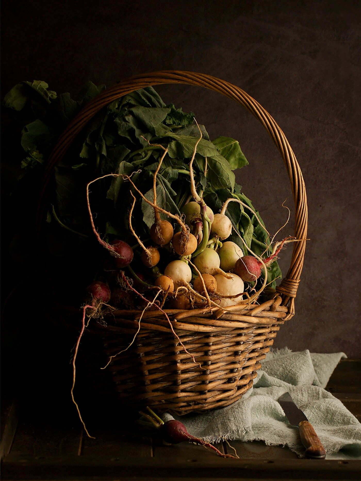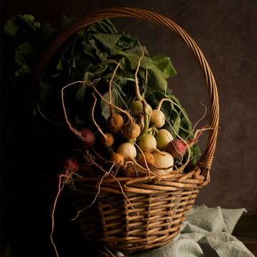 121st CollectionThe messy bunch of radishes. When I came back from the market, I dropped the bunch in this basket. Grabbed my camera, turned back and looked at the table, I said to myself "There's nothing to do ! It's great like that !" It didn't need more settings. The daylight was lovely and gave this wonderful mood.