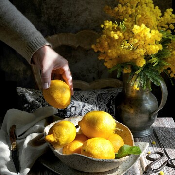 121st CollectionWhen the Mimosas are in bloom it's time to take a picture. What's best than lemons to illustrate the end of winter. Natural light.