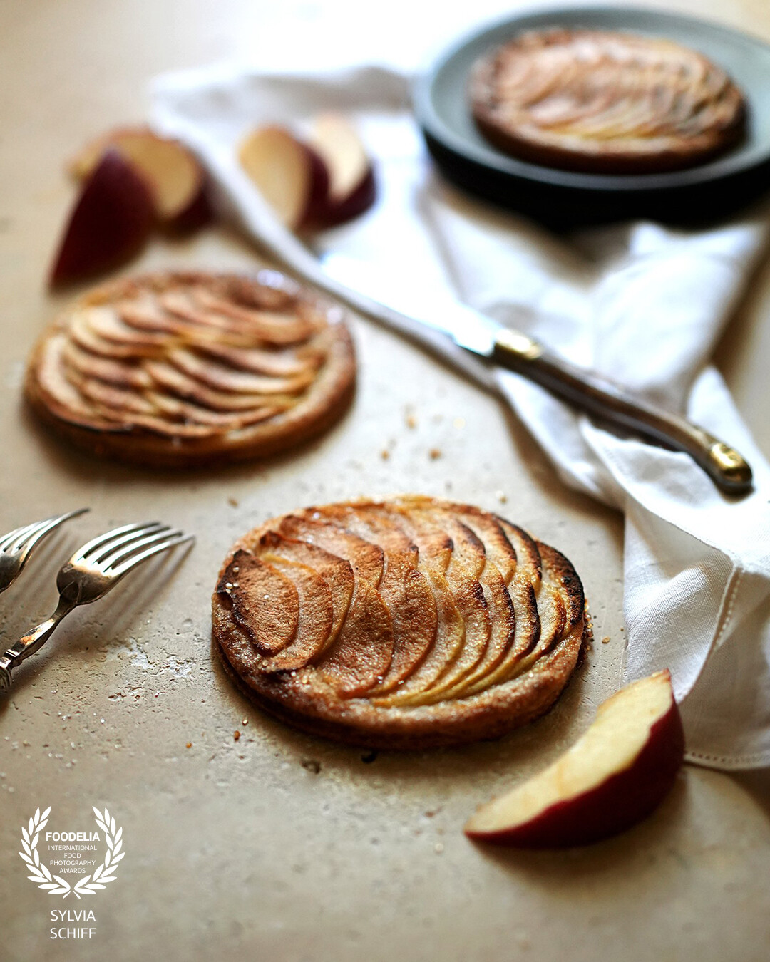 122nd CollectionMy little apple pies. When I set this composition, I turned the table into a backlight because it felt perfect for the harmonious tones matching the pies. Focus just on the front subject seemed perfect to me.