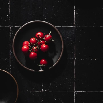 126th CollectionA touch of color. I really wanted to use the black dishes. I figured a minimalistic approach and contrasting accent of bright red tomatoes would be best.