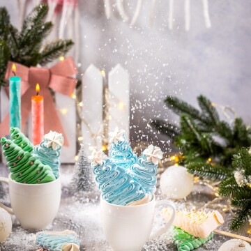 118th CollectionTwo elegant glasses of panna cotta, topped with fresh blackberries, lemon slices, and mint leaves, create a charming scene for afternoon tea with teacups and a teapot