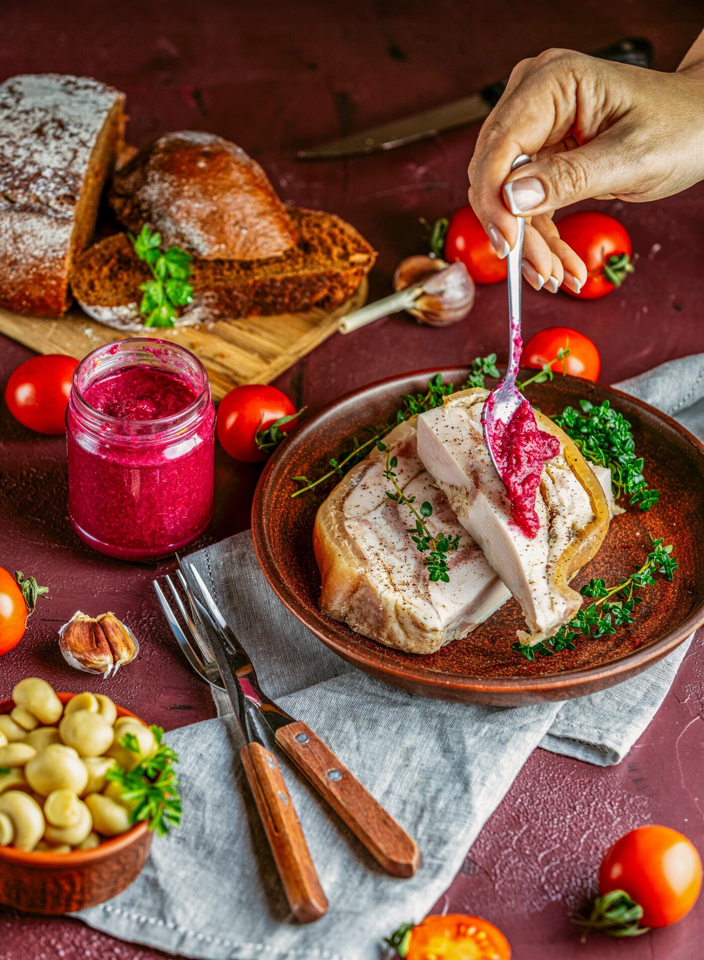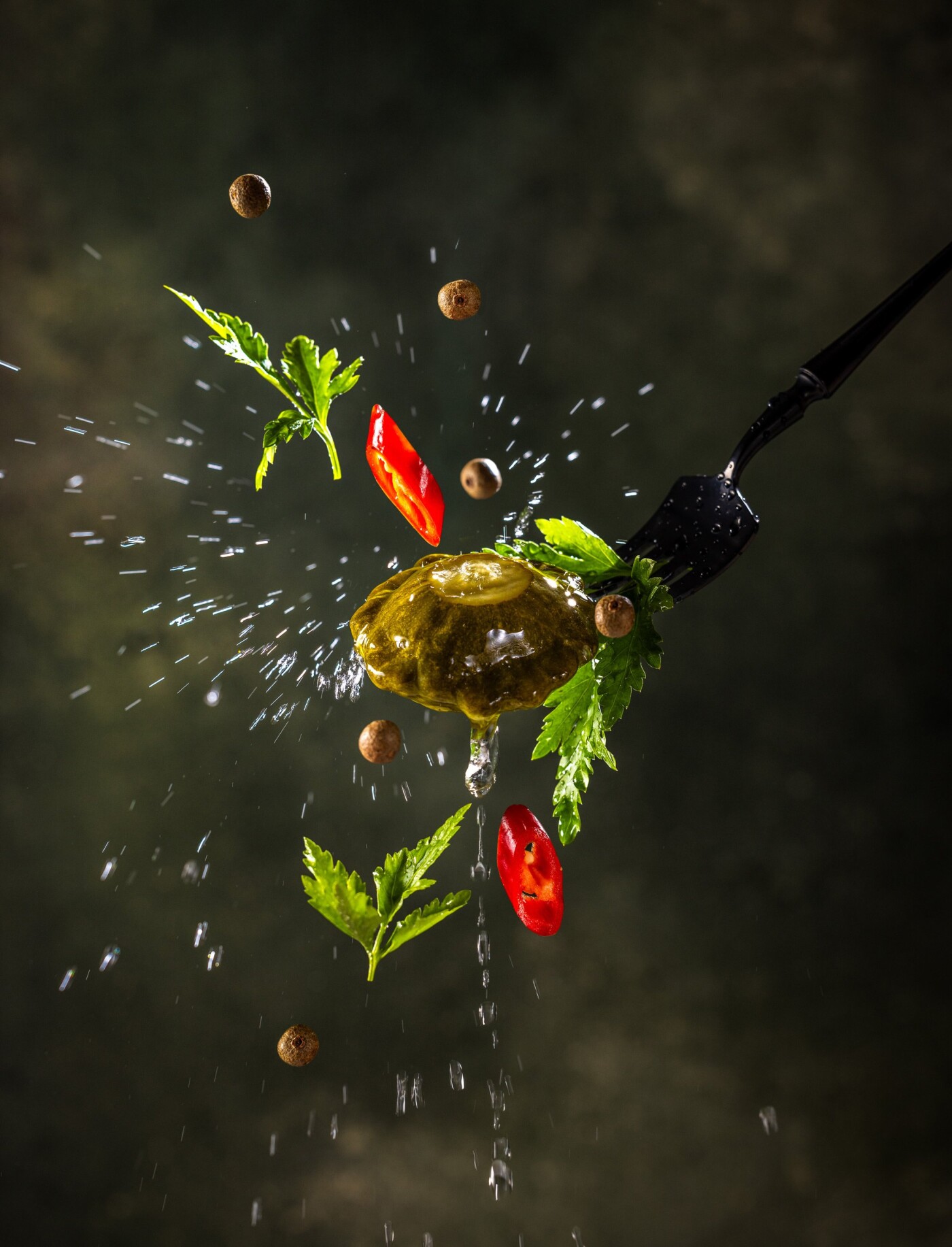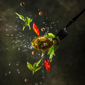 117th CollectionGourmet escargots with herbs, delicious culinary scene. Advertising photo shoot of the local Ukrainian snail farm.